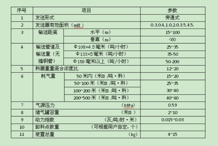 ZSP系列旁通式氣力輸送系統(tǒng)主要技術(shù)參數(shù):