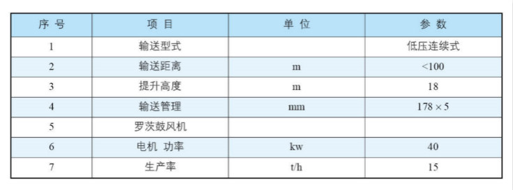 全自動包裝秤ZHY系列低壓壓送氣力輸送系統(tǒng)主要技術(shù)參數(shù):