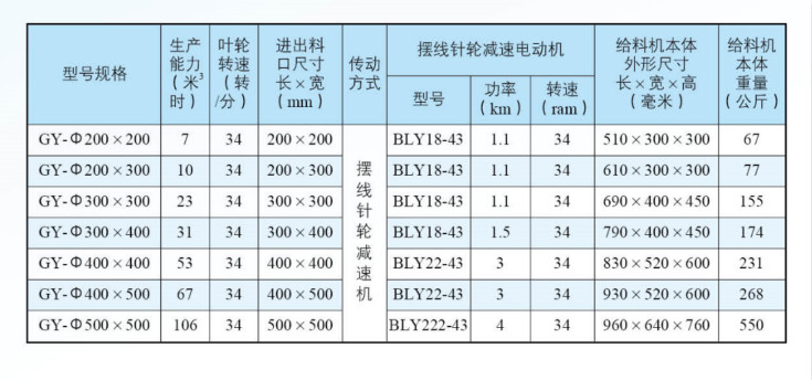 二、全自動(dòng)包裝秤GY型剛性葉輪式給料機(jī)主要技術(shù)參數(shù):