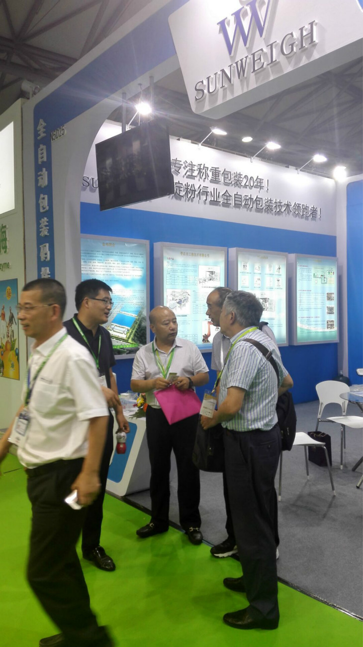 棗莊市三維技術(shù)有限公司自1996年開始研發(fā)生產(chǎn)包裝秤設(shè)備,20年的研發(fā)生產(chǎn)積累了豐富的經(jīng)驗(yàn),同時(shí)也為公司立足于包裝秤行業(yè)奠定了基礎(chǔ)。本屆世界淀粉產(chǎn)業(yè)大會(huì)公司不僅帶來了淀粉定量包裝秤、高位碼垛機(jī)、碼垛機(jī)器人、淀粉自動(dòng)上袋機(jī)等產(chǎn)品,更是大力展示了公司的明星產(chǎn)品淀粉全自動(dòng)包裝秤,展會(huì)一開始就吸引了大量的參展客戶駐足。中間有老客戶,更多的是新客戶的咨詢絡(luò)繹不絕,更有外國客商商談合作細(xì)節(jié)。