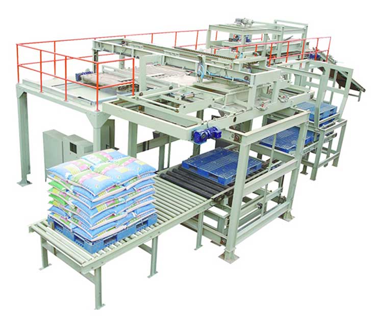 相對來說,機械手安裝方面更靈活一些,可以同時碼放幾個規(guī)格品種的成品包裝袋(包裝箱),可以滿足3條輸送線傳輸來的成品。 高位碼垛機只能碼放一種規(guī)格和一條輸送線的包裝袋。 碼放效果看,高位碼垛機有很大的優(yōu)勢,每小時最高速度可以達到1600包,而且垛型整齊美觀,包裝袋不易滑落。 機械手碼垛機的單抓手每小時一般可以達到800包,雙手抓手可以達到1000包左右。機械手的一個弱點是來的包裝袋位置和姿態(tài)不是很準確的話容易將帶著抓破。垛型比高位碼垛機和人工碼垛都要差很多,而高位碼垛機不存在這個問題。